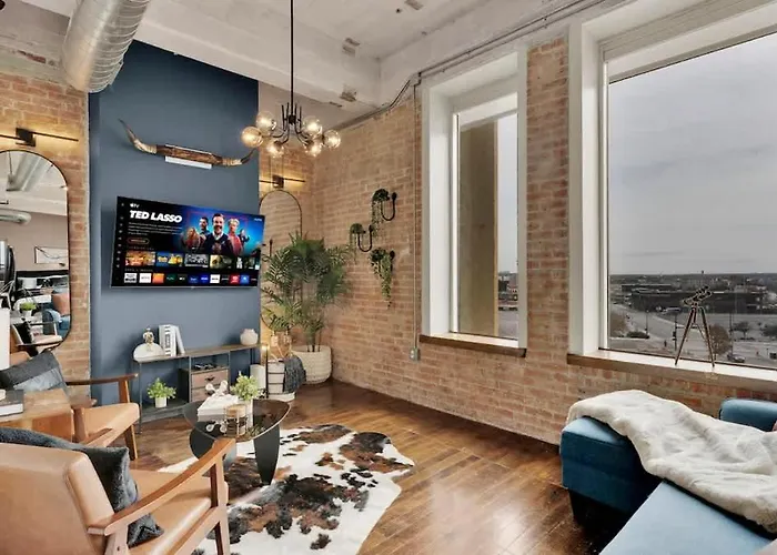 This apartment lies in the Downtown Dallas district of Dallas, in the vicinity of the Old Red Museum. The apartment is only a 12-minute walk from the grand old 1700-seat downtown Majestic Theater and Dallas Love Field airport is 15 minutes’ drive away. The Urban Cowboy Pool 24-7 Gym Bbq Jfk Free Valet Apartment is in proximity to the Arena, and the public park "Pioneer Plaza" is a mere 0.6 km away.